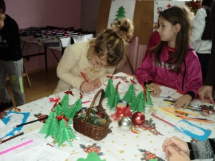 На спирка „Коледна работилница” всяко дете се включи в изработването на коледна украса –елхички, коледни венци , еленови рогца,картички.