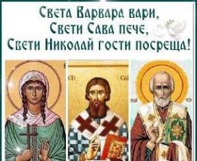 През месец декември честваме едни от любимите ни празници, заемащи особено място в календара ни и предшестващи Коледа и Нова година. Народът казва: “Света Варвара вари, Свети Сава пече, Свети Никола гости посреща”, като в едно изречение се обединяват три поредни празника, свързани с трима значими за църквата светци. Празнично настроение бе обхванало децата от група Детелина“ на 5 декември, когато облечени в прекрасни народни носии, сред красиво подредената трапеза, почетоха хубавия християнски празник - Св. Варвара. Те разбраха, че Св. Варвара е приемана като пазителка на малките деца от болести и най-вече от едра шарка.