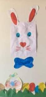 Те пяха, рецитираха , танцуваха и зарадваха всички със своите вълнуващи изпълнения. Посветени на празника, пъстри, красиви и изработени с много усет за цветове и хармония грейнаха апликациите на децата във ФБ страницата на групата. Със своите снимки и клипчета те ни направиха съпричастни на подготовката си за светлия християнски празник Великден – великденската украса в домовете си, боядисването на яйцата, месенето на козунаци. На последвалата онлайн среща „зайчетата“ пяха песнички, рецетириха стихчета за Великден и всички заедно изработиха великденски пиленца от цветна хартия. Макар и физически разделени малчуганите от групата успяха да бъдат заедно на празниците и изпитаха невероятни емоции от проведените онлайн срещи.