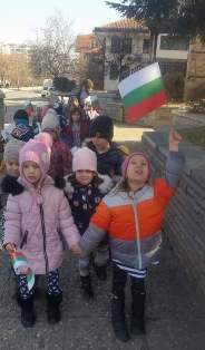 Малките "любопитковци " проявиха интерес и научиха някои исторически факти за създаването на България като държава и нейните велики владетели, а след това оцветиха българското знаме. С голямо старание и любов те изработиха картички - хармоники с рисунки от България. Така постепенно събуждахме обичта на малките към Родината и им помагахме стъпало по стъпало да се изкачват нагоре по стълбицата на родолюбието. Успяхме да посеем зрънцата любов към роден дом, роден край и Родина, които ще помогнат на нашите малки кюстендилчета да израстнат достойни българи, защото без национална идентичност ние не сме нито племе, нито народ.