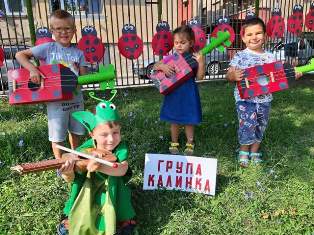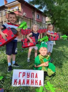 Малките калинки отговориха на този въпрос като си направиха концерт с уникални калинени китари, направени от рециклирани материали. Усмивките не слизаха от личицата на малчуганите, защото се радваха на заслужените аплодисменти, които получиха. Децата се наслаждаваха на топлите слънчеви дни като не пропуснаха възможността да включат и водните игри в своите забавления, които разбира се, са безценно удоволствие за всеки малък палавник. Двора на ДГ се превърна в моден подиум, на който малчуганите умело дефилираха като истински манекени, представяйки любимите си официални облекла и модни аксесоари. Децата се превъплатиха и в ролята на креативни модни дизайнери, които разработиха общ проект и създадоха голяма цветна пеперуда, която пренесе децата в света на приказките. Всички разнообразни летни дейности бяха инициирани от екипа на група "Калинка", обединен в една обща цел - грижа с любов и внимание за възпитание, обучение и свободно изявяване талантите на всяко дете.