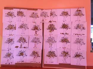 Заредени с много слънчево настроение в топлите октомврийски дни и провокирани от красивите багри на есента, която като истински художник беше оцветила дървета и храсти, децата от група "Калинка" решиха да проявят творческите си умения. Те предвидливо бяха събрали красиви есенни листа при организираните си разходки и наблюдения в природата.