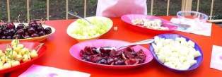 С удоволствие те пяха песнички, рецитираха стихчета и отгатваха гатанки за пълните с витамини плодчета. Очаровани от неповторимия вкус на сладките черешки, малките кулинари от групата вложиха цялото си старание в приготвянето на здравословни и красиво аранжирани плодови салати. Примамливите бели и червени плодчета провокираха детската фантазия и въображение.