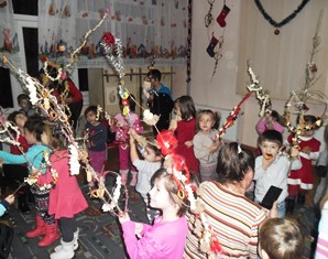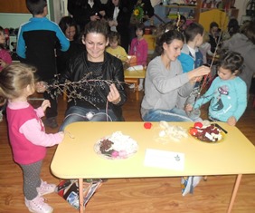 Родители, деца и учители се събраха заедно, като едно голямо семейство, за да направят сурвачки от дрянови клончета.