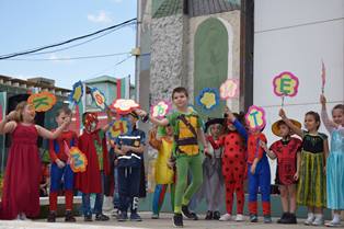 За всички деца, родители и приятели на ДГ „Слънце” гр. Кюстендил, денят 28.05.2018 година беше по - различен от всички останали, изпълнен с много смях и ведро настроение. Принцеси и принцове, Пепеляшка, Батман, Спайдермен, пеперуди, пирати, миньони, моряци и много други приказни герои шестваха по улиците на нашия град и изпъстриха централния площад „Велбъжд”. Многоцветното весело шествие се водеше от малки мажоретки, които плениха всички с красотата и таланта си.