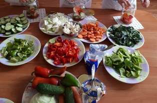 Ароматът на свежи зеленчуци създаде атмосфера на уют и весело настроение. Червените чушки сякаш се перчеха със своите алени рокли, жълтите сиврии се хвалеха колко са крехки и вкусни. Те тайничко поглеждаха към зеления красавец, когото всички наричат Кервиз. Съсредоточени в своята дейност, като истински кулинари, които ценят качествените продукти, децата опитваха и дегустираха тези есенни дарове, коментираха тяхната форма, разнообразието от цветове, аромати и фантастични здравословни качества.
