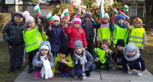 В днешния слънчев първи февруарски ден разходката на децата от група "Лъвчета" завърши с урок по родолюбие. Те поднесоха цветя и се поклониха пред паметника на дядо Ильо войвода - виден хайдутин и борец за свобода. На 30 януари Кюстендил е освободен от турско владичество, затова разходката бе съчетана с урок "по родолюбие".