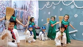 Накрая малките актьори отправиха емоционален поздрав с песен и танц и с пожелание святата Коледа да влезе в домовете ни и да донесе здраве, мир и благоденствие.