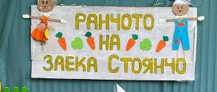 Положителното отношение към двигателната активност и спорт малчуганите изразиха чрез участието си в спортна композиция „ Утринна гимнастика на Зайка и нейните зайчета“.