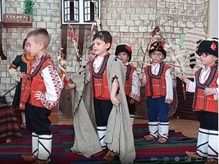 В първия ден от новата 2023 г. децата от група „Синчец“ на ДГ ‚Слънце“ представиха народния обичай „Сурвакане“.