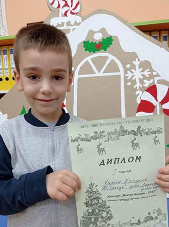 През месец декември 2022 година децата от група „Синчец“ с желание се включиха в традиционния конкурс „Моята Коледа“, организиран от Читалище „Пробуда1961“ град. Кюстендил.