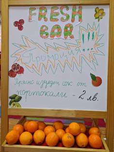 Имахме си "FRESH - BAR", ресторанти, шеф-готвачи, сервитьори, хостеси и клиенти, които се насладиха на приятната обстановка и здравословната храна. Най-малките „слънчица“ имаха среща със зеленчуците и с удоволствие разказваха за ползата от тях.