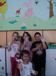 Децата от група „Синчец“ – филиал „Здравец“  се учиха да изработват сами играчки. Те избраха да направят куклички от най – често срещаните се около нас материали – пластмасови чашки, конци и хартия.