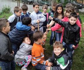 Проведено бе практическо занимание на тема: „Грижим се за нашия двор“. Целта бе децата на практика да се запознаят със засаждането на декоративните дръвчета и да полагат грижи за тяхното отглеждане.