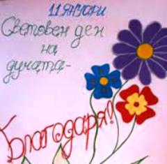 На 11 януари 2022 година децата от ДГ „Слънце“ отбелязаха Световния ден на думата „Благодаря“. В групите беше организиран емоционален разговор и незабравим празник, посветен на най - прекрасната „вълшебна дума“. Малчуганите вече знаят, че „Благодаря“ не е просто израз на благодарност, а носи в себе си вътрешно преживяване и един силен енергиен заряд.