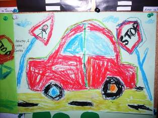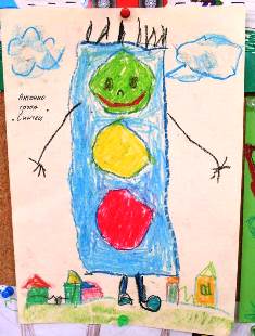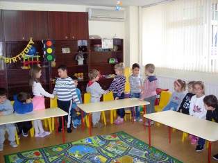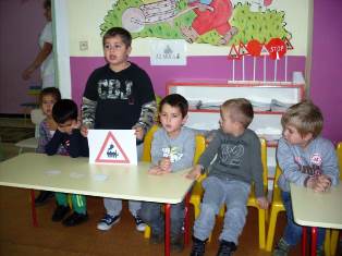 След взаимното опознаване и сприятеляване малчуганите направиха упражнение за автомобилното и пешеходното движение, отидоха на пътешествие из улици и тротоари, където мигат светофари.С много песни, стихчета,гатанки, игри , състезания и други забавления децата демонстрираха своите познания за пътните знаци,за светлините на светофара и умения за това как да пресичат правилно и къде това да става.
