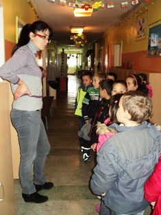 Децата влязоха и наблюдаваха с интерес класните стаи на училището, посетиха столовата,където по-големите от тях каки и батковци- учениците, се хранят.