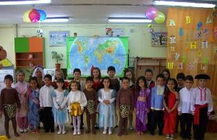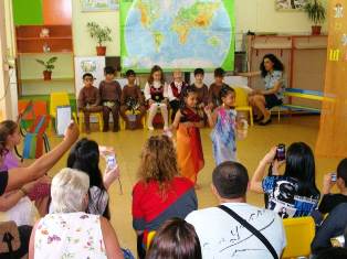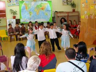 В уютната занималня на детското заведение те се превъплатиха в представители на различни страни и народи: с песни, танци и стихчета те отведоха родителите си и гостите на тържеството до незабравими и красиви кътчета от света....( от дивите места на индианските племена, до слънчевата и китна Испания, Гърция, през Англия, Русия, Арабските страни, та чак до Япония ).