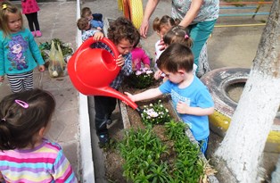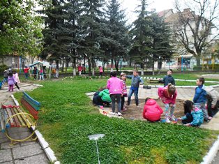 Всяка група на детското заведение участва в облагородяването на двора, посредством изграждането на специални еко – зони. Със задружен труд в тях посадихме различни растителни видове-цветя, храсти.