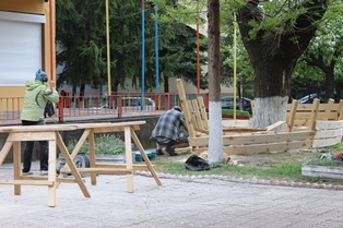 В началото се направи изравняване и почистване на зелени площи, пясъчници и алеи. С помощта на нашите приятели от Ротари клуб - Кюстендил бе изградена чудесна „лодка – беседка“ около голямото дърво в двора на централната база.