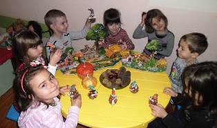 Децата от група „Кокиче” обичат природата. Проявеното от тях отношение към красивите багри на есента, намира изражение в ежедневието им.Когато ходят на разходка в парка или в двора на детската градина, те събират природни материали. С тях изработват най-различни изделия, като влагат много старание, творчество и въображение. През тази есен направиха красиви пана от есенни листа, коледни джуджета от шишарки и костенурки от орехови черупки.