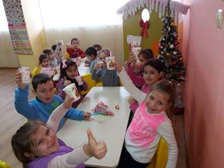 Това се случи през месеца на здравословното хранене, проведен в детската градина ( ноември 2017 ). Те научиха за вредните и полезните храни, както и защо децата трябва да пият мляко и колко е полезно то за зъбките.