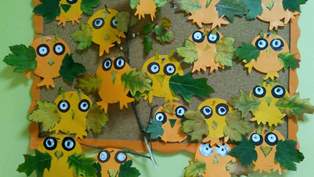 Трудолюбивите "Пчелички" и малките "Калинки", очаровани от "есенните съкровища", които сами бяха намерили, направиха забавни бухалчета, охлювчета и гъбки от кестени и листа. Малчуганите от групи "Кокиче", "Детелина" и "Светулка" пресъздадоха красотата на природата като изработиха "есенно дърво" използвайки различни технологии - печатане с пръсти и обемни апликации с природни материали. Те изпитаха истинско удоволствие от предизвикателните задачи, а крайният резултат бе посрещнат с възхищение и гордост.