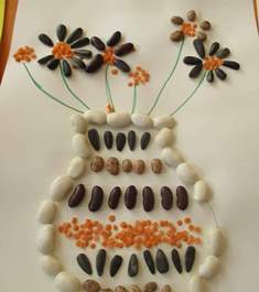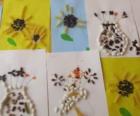 С усет за хармония и естетика, децата от група "Зайче" подреждаха бобчета и семена. Те съчетаваха цветовете от природата и с търпение, прецизност и внимание изработиха оригинални творби.
