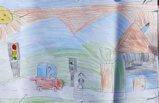 Чрез своите рисунки децата показаха, че знаят правилата за пресичане на улицата, разпознават сигналите на светофара, ориентират се в указателните знаци, познават безопасния маршрут до детската градина.