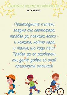 Децата от ДГ "Слънце " с желание и интерес взеха участие и тази година в инициативата, която дава възможността да се изследват ролята на улиците в града и да експериментират с разнообразни практични решения за придвижване в населените места. Групи "Пчеличка", "Мечо", "Детелина" и" Гъбка" си направиха импровизирано състезание с тротинетки и колела.