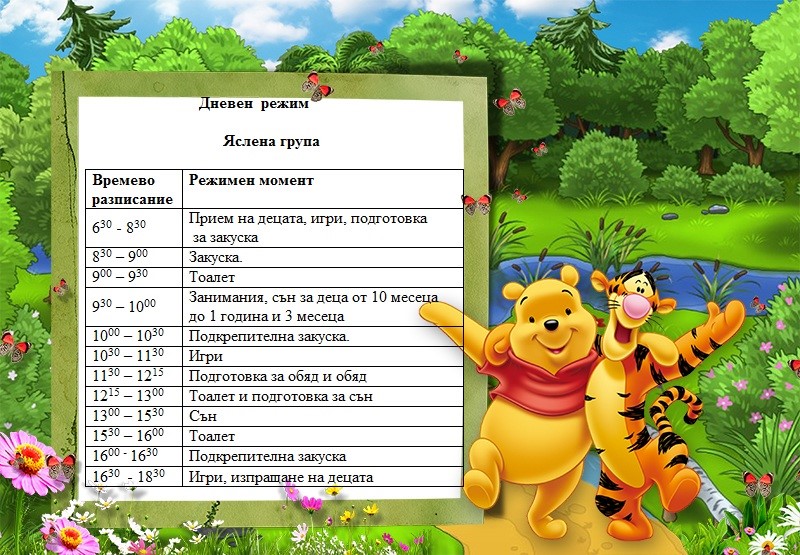 Дневен режим за група „Мечо“ за учебната 2024/2025 година