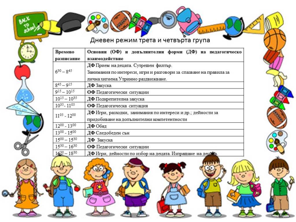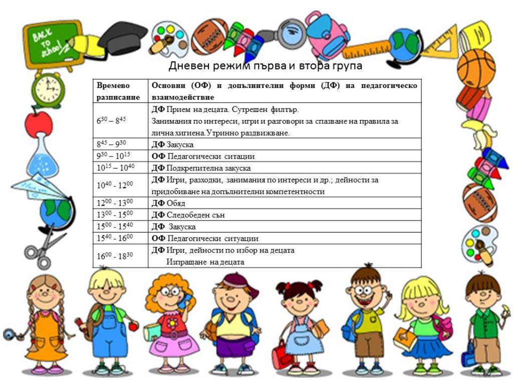 Дневен режим за група „Калинка“ за учебната 2024/2025 година