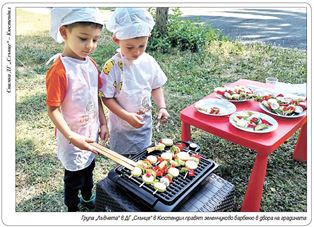 В дните от 19 до 23 юли 2021 година - в Седмица на здравословното хранене в ДГ"Слънце" гр. Кюстендил, децата от група "Лъвчета " участваха в интересна педагогическа ситуация - зеленчуково барбекю на открито; децата от група "Славейче" посетиха зеленчуковата градина на мама Евелина и тате Евгени, родители на Елина; разгледахме техниката в мандра „Петя“, намираща се в с. Горна Гращица и посетихме кравефермата в село Коняво.