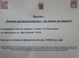 В ДГ"Слънце" беше финализиран проекта "Зелена детска площадка - по - близо до децата". Проектната идея се реализира с финансовата подкрепа на Сдружение "Платформа Агора" и Община Кюстендил.