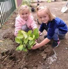 Приключи изпълнението на задачите по Дейност 2 - озеленяване и засаждане на цветя, част от проект "Малки еколози за зелена детска градина" /ПУДООС/.Деца и родители озелениха и засадиха цветя в част от дворното пространство на ДГ "Слънце", филиал на ул. „Велбъжд“ 7.