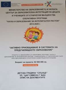 В ДГ „Слънце“ гр. Кюстендил продължава допълнителното обучение по български език с децата, участващи в проектната дейност по Проект „Активно приобщаване в системата на предучилищното образование“. Сформирани са две групи с общо 10 деца. По интересен и забавен начин те усвояват българския език чрез допълнителните форми на педагогическо взаимодействие и игрите. Ръководителите на групите са разработили програми за работа, съобразени с изискванията на Наредба №5 за предучилищното образование. За всички деца има осигурени учебни помагала, образователни игри и др.