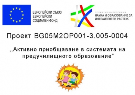 Продължаваме работа по проект "Активно приобщаване в системата на предучилищното образование"