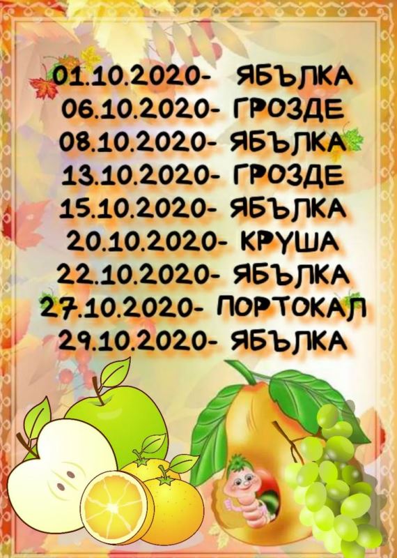Полезна информация за предлаганите плодове, зеленчуци, мляко и мед в ДГ 2020-2021 г.